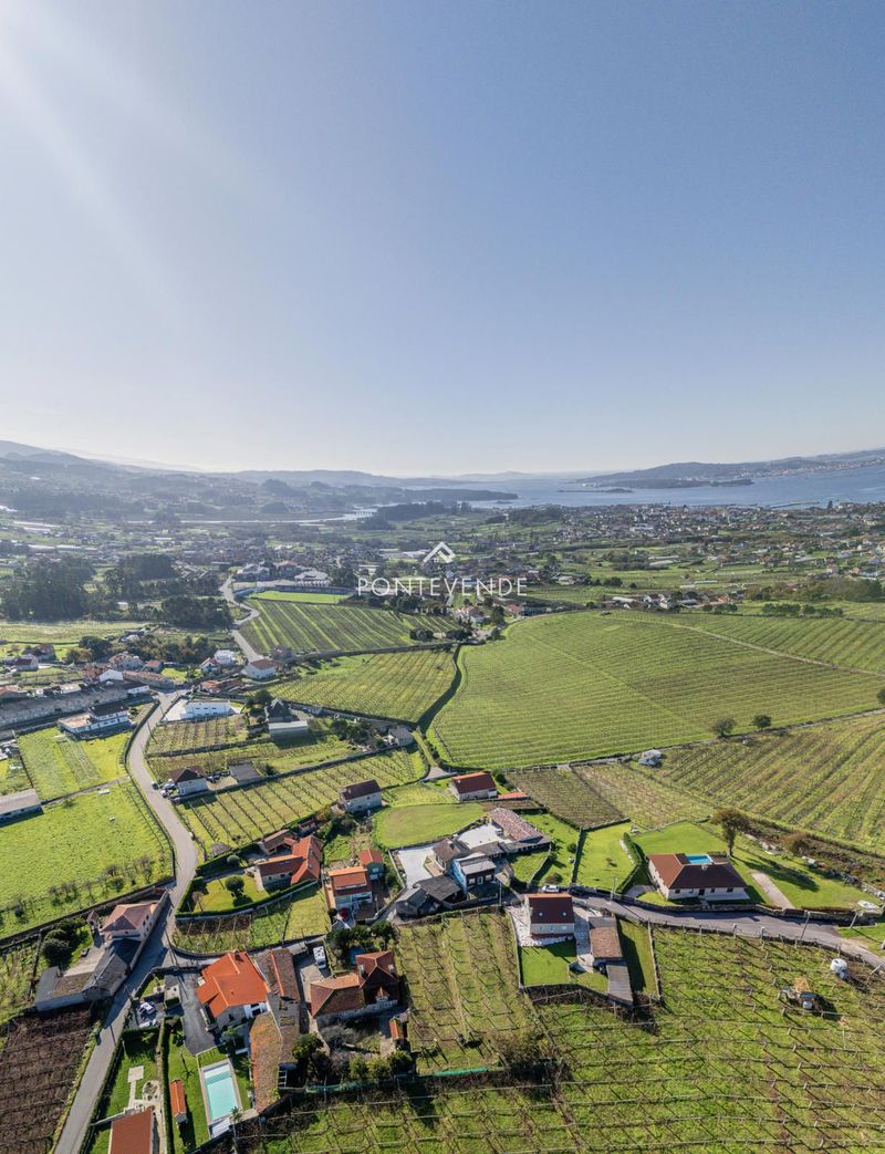 Casa de piedra de cantero con finca edificable, vistas al Valle del Salnés, bodega y hórreo. Zona tranquila junto a Cambados, viñedos y playas. Ideal vivienda o inversión turística.
