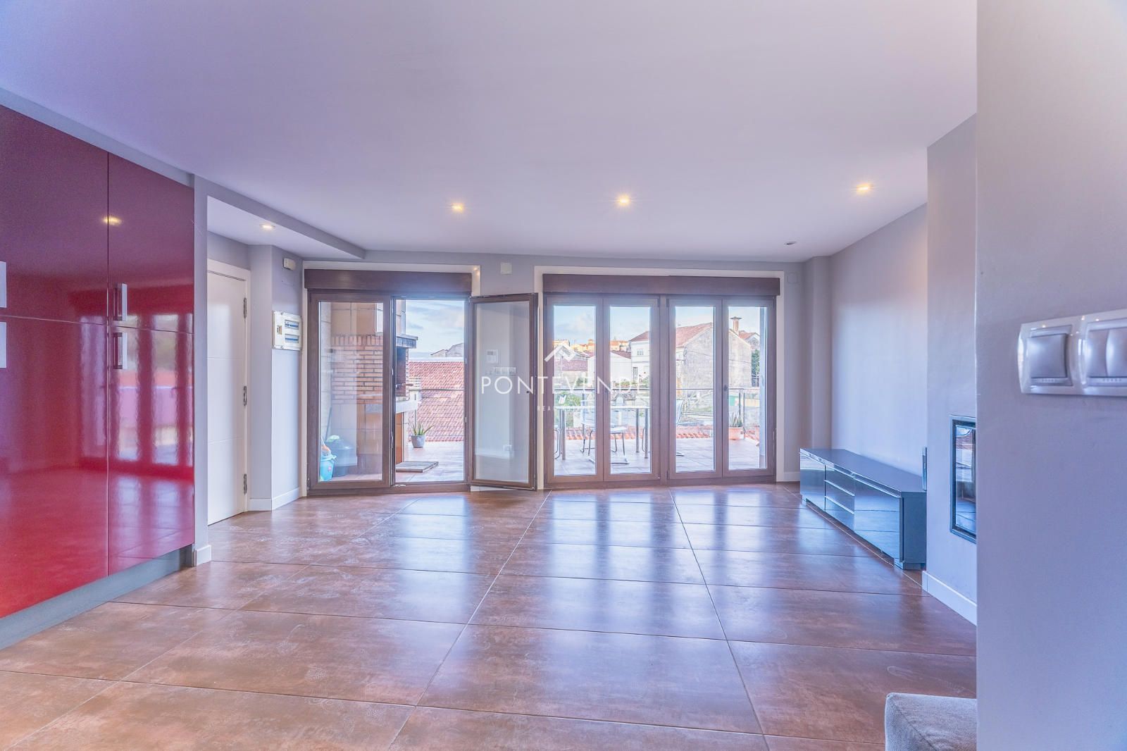 El interior ofrece un espacioso salón–comedor–cocina de concepto abierto, muy luminoso, con grandes ventanales oscilobatientes que conectan directamente con la terraza, creando una continuidad perfecta entre interior y exterior. Además, dispone de chimenea, aportando calidez y confort durante todo el año.