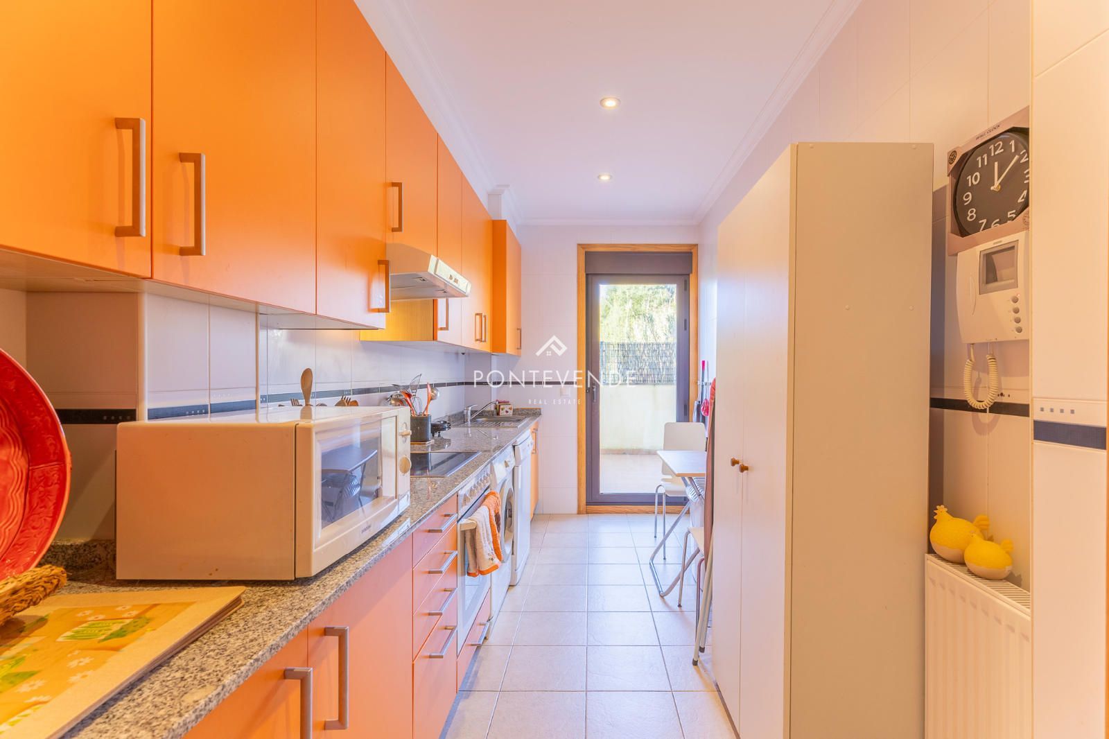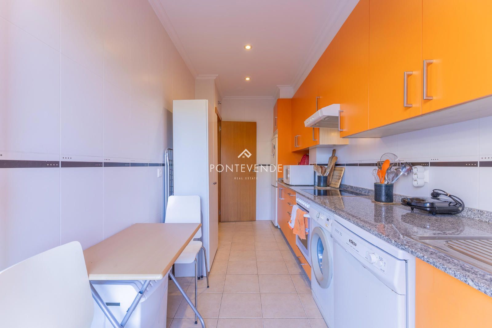 Cocina independiente equipada, con muebles altos y bajos y electrodomésticos: lavadora, lavavajillas, vitrocerámica, horno, microondas, nevera combi y campana extractora