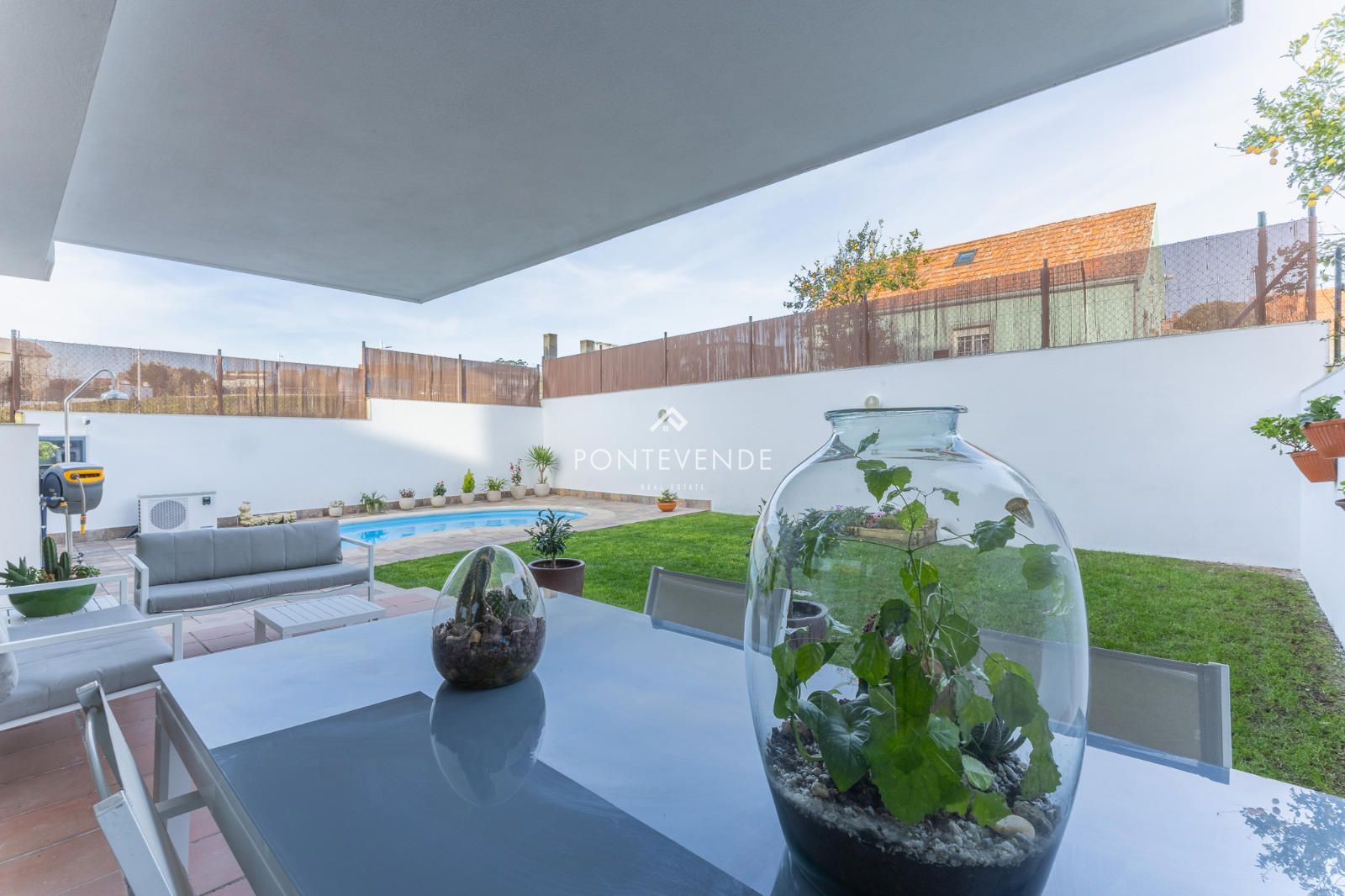 Pero con terraza + jardín + piscina privada de uso exclusivo a esta distancia de la playa… hay muy pocos.