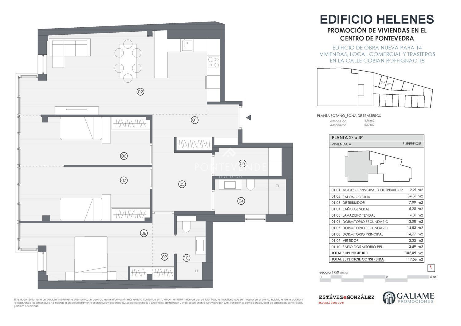 Vivienda de obra nueva en el centro de Pontevedra, ubicada en la tercera planta del Edificio Helenes, un edificio moderno, eficiente y de diseño contemporáneo.